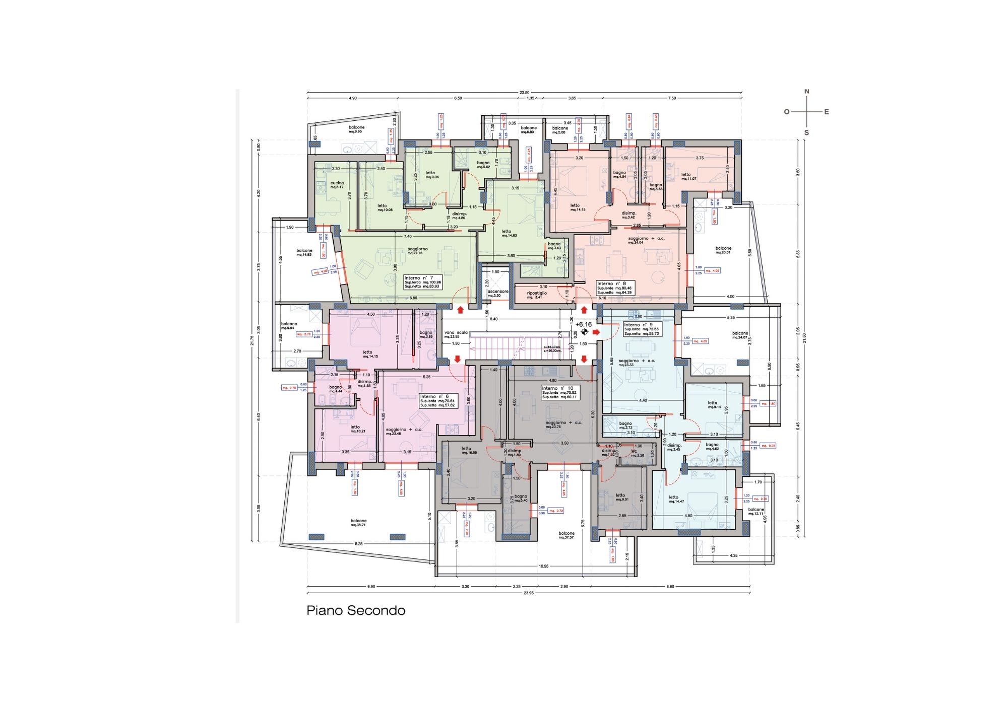 Na drugim pietrze zlokalizowane jest pięć apartamentów o wielkościach od 72 do 100 m2 .