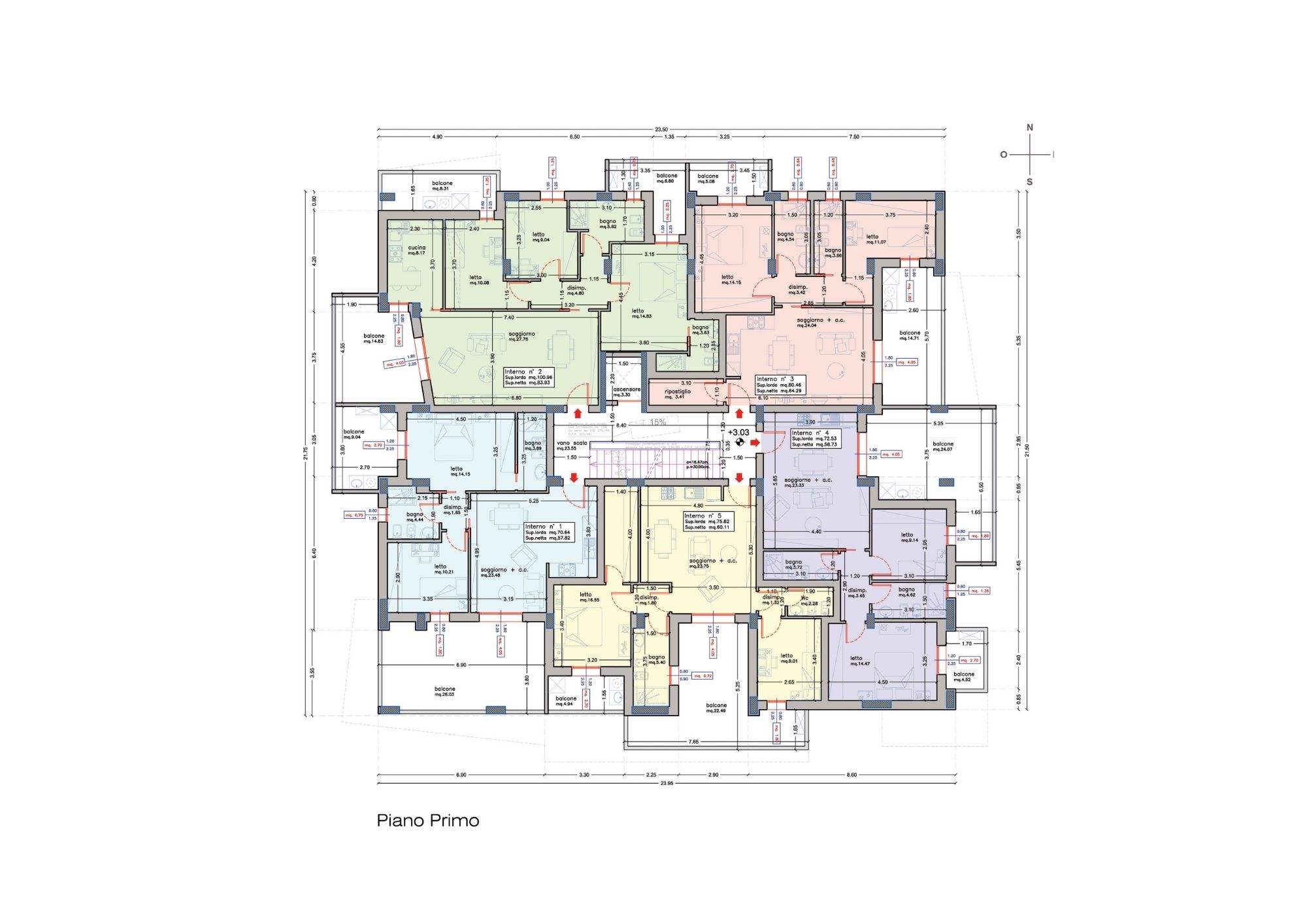 Na pierwszym pietrze zlokalizowane jest pięć apartamentów o wielkościach od 75 do 100 m2 .