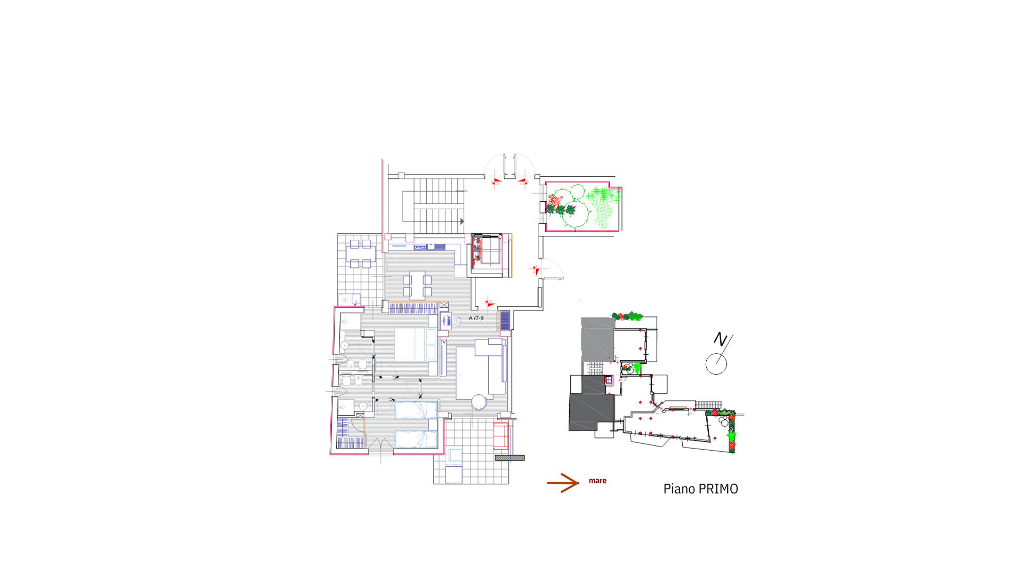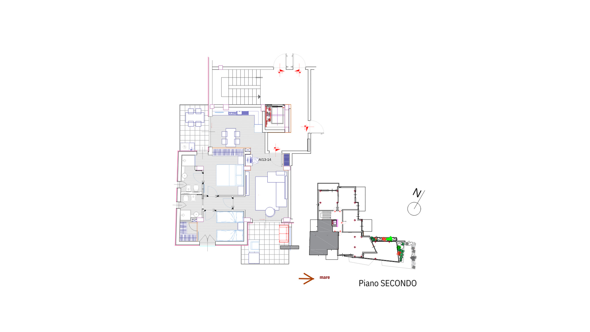 Taki sam układ jak A7-A8: salon i jadalnia z kuchnią, główna sypialnia z łazienką i szafą, druga sypialnia z podwójnym łóżkiem (lub dwa łóżkami) z garderobą i łazienką dla gości. Dwa przestronne balkony z widokiem na morze. Parking w garażu wliczony w cenę.