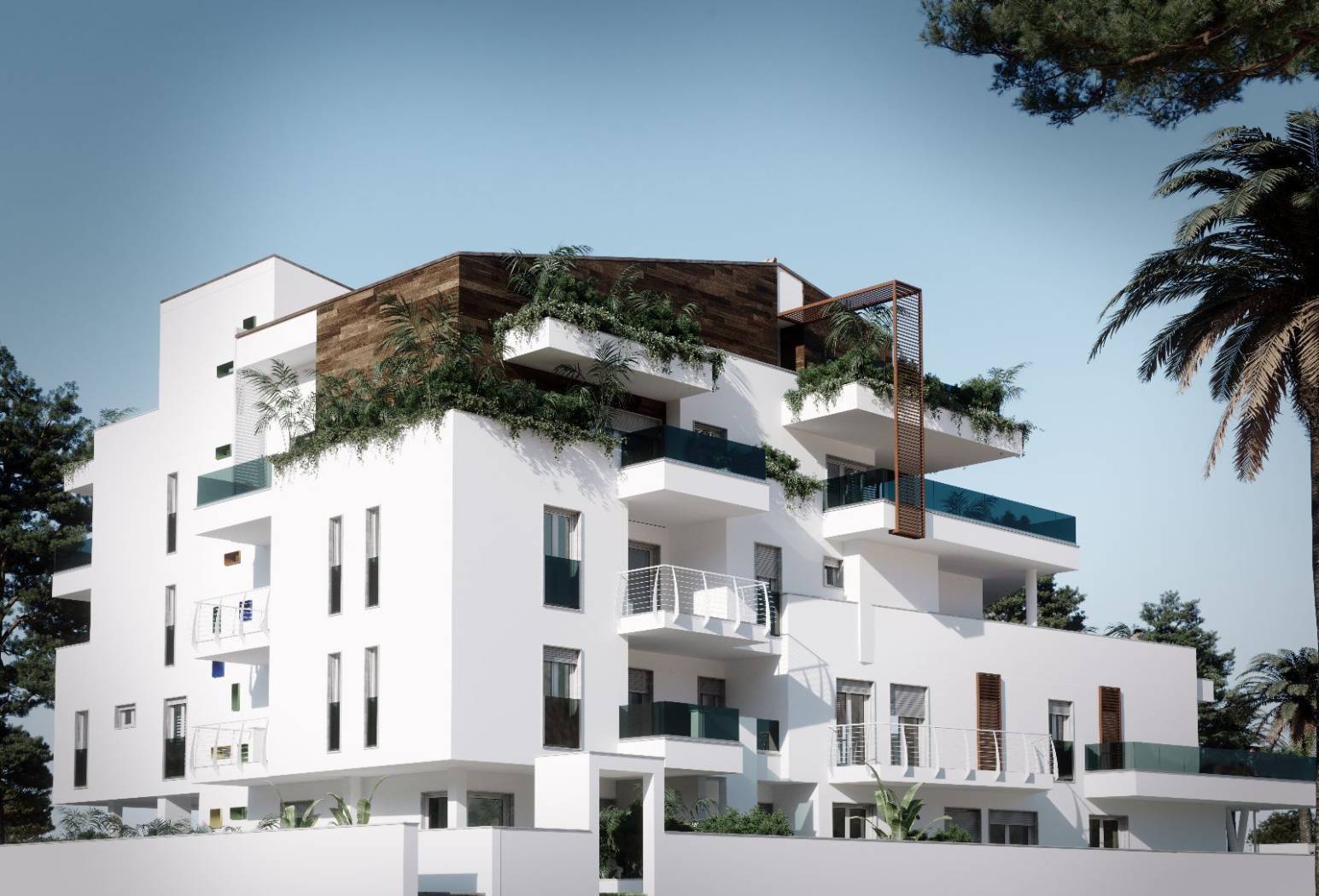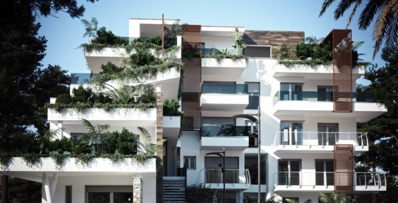 architekturę. Tarasowe dachy, wiszące ogrody i zielone balkony przekształcają każdy apartament